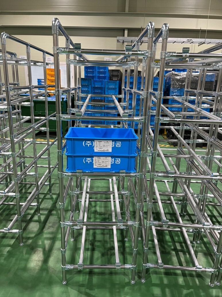 플라스틱박스가 적재가되며, 1열5단3행 기준으로 8대 발주건 작업이며, 실제 랙이 사용되는 작업공간에 틈틈히 채워줘야하는 조건이라 !! 1열씩 쪼개서 작업을하였습니다.