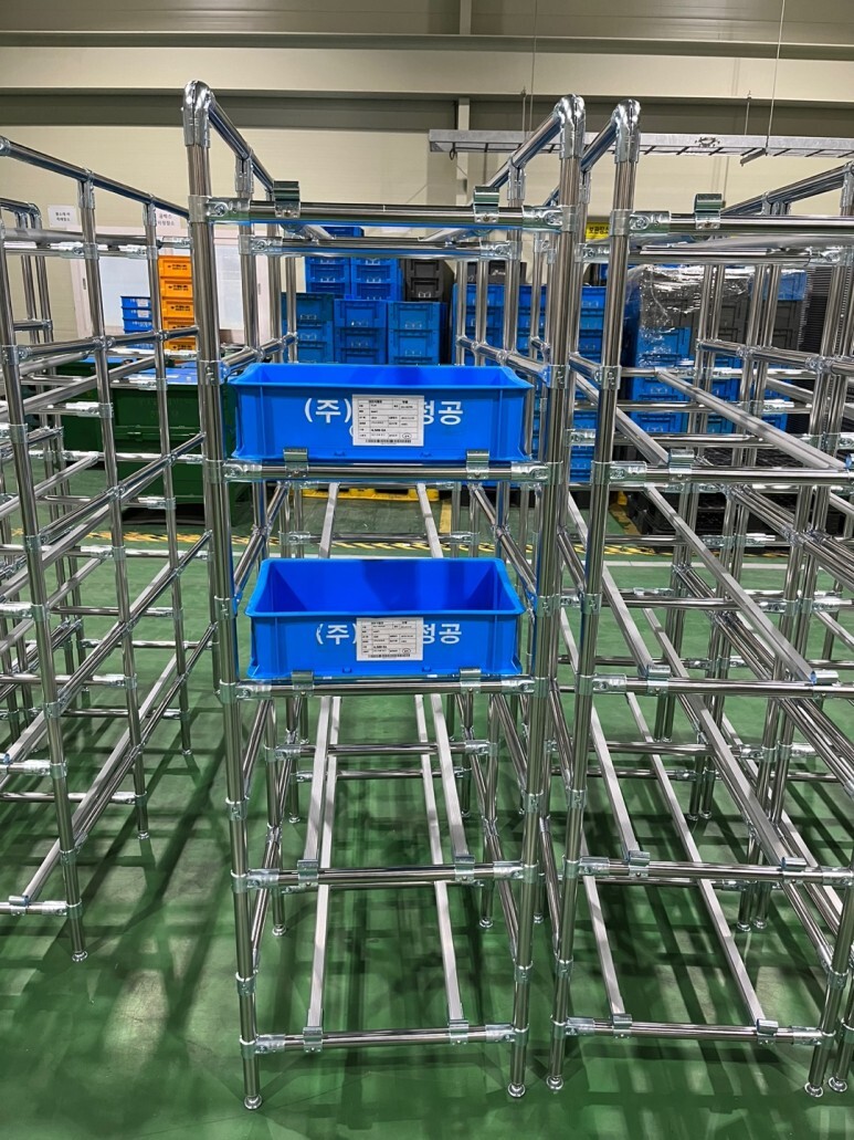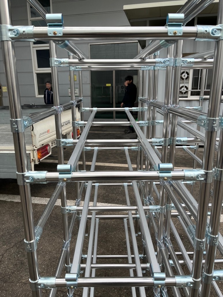 3. 슬라이드랙 메탈조인트 SUS파이프 서스파이프 알리미늄 슬라이드파이프, 코팅파이프, 원형랙, 랙, 김포랙,안성랙 제작사례 입니다.
